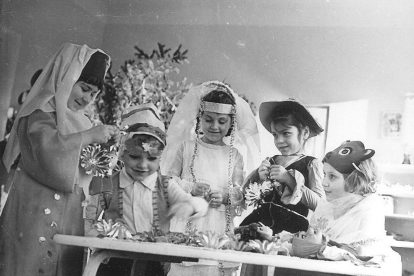 Pregătiri pentru serbarea de „Anul nou” la grădinița „Floricica”, 1977