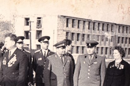 În fundal: Clădirea Școlii medii din Cojușna aflată în construcție